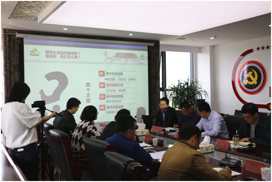 在授课中,阚震同志分别从“遵守党内法规、遵守党的纪律、遵守规章制度、遵守法律法规”四个方面讲述了国有企业如何重规矩?重规矩,我们怎么做?他认为我们要尊崇党章,积极学习《准则》《条列》,遵守六大纪律、规矩等。